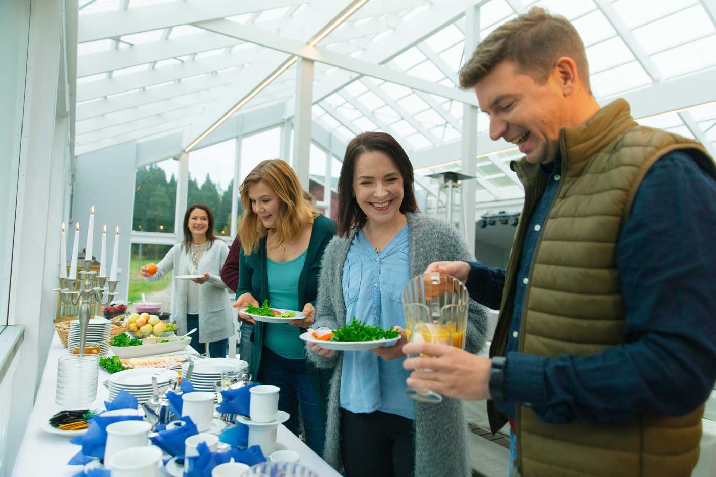 Käytämme kokouspäivällisiä ja juhlaruokia valmistaessamme joko itse kasvattamiamme tai henkilökohtaisesti valitsemiamme, korkealaatuisia ja puhtaita Haminan seudun lähitilojen ja luomutuottajien raaka-aineita.